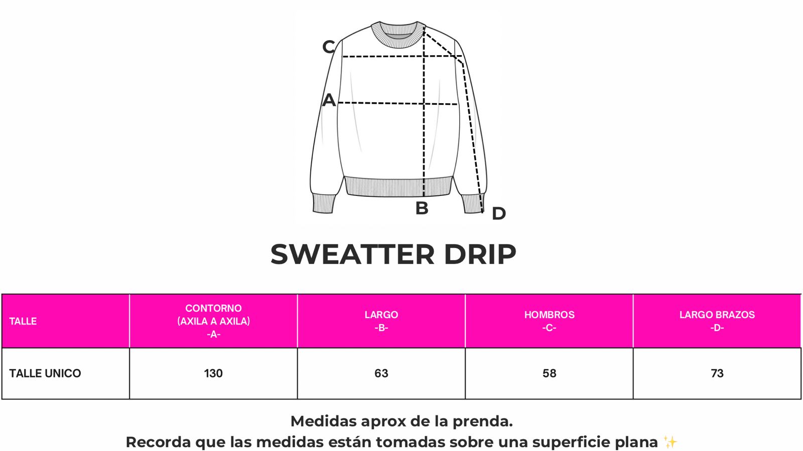 Tip para sacar la medida en tu casa: compará las medidas con un sweater tuyo para darte una mejor idea del calce