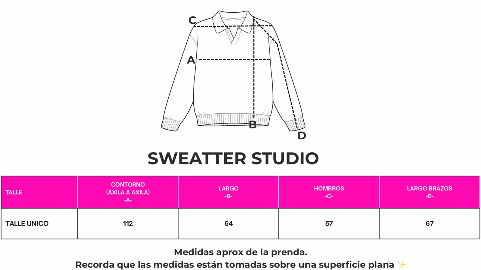 Tip: compará las medidas con un sweater tuyo para darte una mejor idea del calce